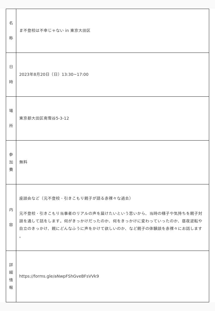 ■「#不登校は不幸じゃない」 in 東京大田区 開催概要