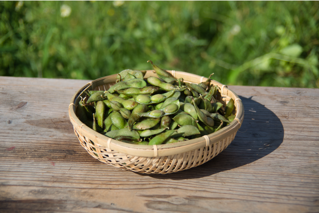 盆地特有の寒暖差による深い霧と粘土質の多い土壌で育った黒枝豆は粒が大きく、独特の甘みやコク、ほくほくとした食感が特徴です。期間中も日を追うごとに熟成が進み、見た目や味わいが大きく変わります。また、茹でて食べるだけでなく、フライパンやグリルでつくる焼き枝豆、炊き込みご飯、パスタの具材など、さまざまな食べ方をお楽しみいただけます。グルメ漫画『美味しんぼ』でも絶賛された「幻の枝豆」を季節の変化や多彩なレシピとともにお楽しみください。