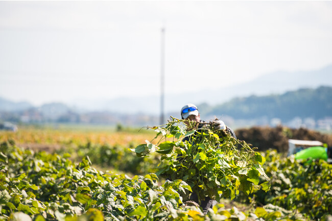 丹波篠山黒枝豆をはぐくむ「丹波篠山の黒大豆栽培」は、令和3年に農林水産省の「日本農業遺産」に認定されました。村ぐるみで生産に取り組んだり、大きく丸いものを選別して育てることを繰り返したり、江戸時代300年以上前から行われてきた独自の伝統的な農法を今も受け継いでいます。一般的な黒大豆は開花から成熟するまで約70日かかるのに対し、丹波黒は約100日と長く、30日近くも多く養分を蓄積しながら成熟し、粒が大きく成長します。その分、栽培に多くの手間と時間が必要なことから「苦労豆」とも呼ばれています。