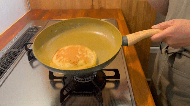フライパンは軽くどなたでも持ちやすいハンドルなので、フライパンを振った時に、手首が疲れにくく