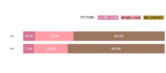 さらに「性別・年代別」で傾向を見てみました。若年層になる程、より購入(利用)意欲を喚起されている事が分かります。また、全世代を通して男性に比べ女性の方が「より欲しくなる」+「時々欲しくなる」の回答が多く、購入意欲のスコアが高くなっていることも特徴です。