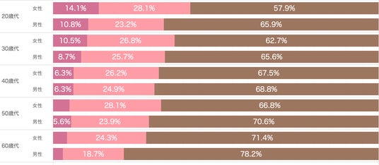 ※調査対象者は「15歳以上」ですが、当社では「18歳未満」を「直接ターゲット」かつ「購入意向を高めようとする」プランニングは広告設計において特に繊細な配慮が必要であると考えています。ゆえに当社ポリシーに反するデータ利用を避けるため、今回のレポートからは10歳代の調査結果を外し「20歳以上」を集計の対象としております。