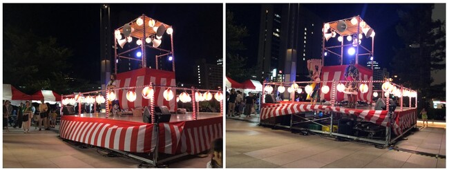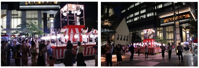 飯田橋サマーフェスタinサクラテラス実行委員会は、飯田橋で暮らす人も働く人も一緒になって大人も子供も楽しめるイベント『第2回 飯田橋サマーフェスタinサクラテラス』(主催:飯田橋グラン・ブルーム 管理組合)を4年ぶりに開催しました。今年も飯田橋グラン・ブルーム駅前広場を会場に、2段の大きなやぐらを組んでの盆踊り(協力:千代田区民謡連盟 )や富士見二丁目町会主催の子ども花火(手持ち花火体験)、飯田橋グラン・ブルームにご入居されている各企業様によるブース出展(ゲーム企画や体験企画など)&キッチンカーなどの充実の内容に、参加された大勢の方々が各々に夏の終わりを楽しんでいる様子が週末の飯田橋で伺えました。