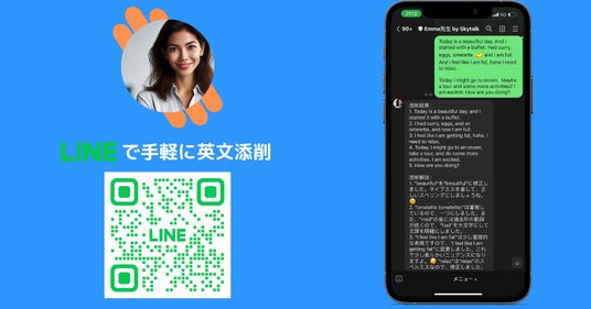 株式会社スカイトークが生成AI技術を活用し、AIの英文添削アプリを開発。英語学習の効率化を実現するEmma先生をLINE上でサービス開始。添削から画像生成まで、AIで提供!