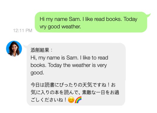 Emma先生は、ユーザーの学習を事前にプログラムされた正式な教育カリキュラムに依存せず、各ユーザーのニーズに合わせてパーソナライズされたフィードバックを提供します。英語日記、英作文、ビジネス英語など、あらゆる英文作成に対して質の高い英語添削と教育支援を提供します。