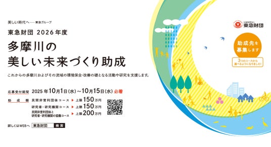 公益財団法人 東急財団(理事長:金指 潔) は、10月1日から「多摩川の美しい未来づくり助成」の募集を開始します。