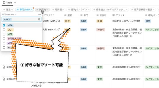 - 国内の主要な社会人大学院を網羅:日本の主要な社会人大学院の情報を広範囲にカバーしています。