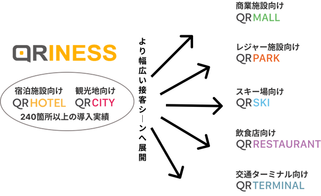 2018年のサービス開始以降、宿泊施設向けの「QRHOTEL」、観光地・自治体向けの「QRCITY」で、大手ホテルチェーンや主要観光自治体等、合計240箇所以上のサービス導入実績があります。