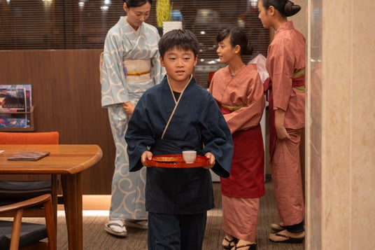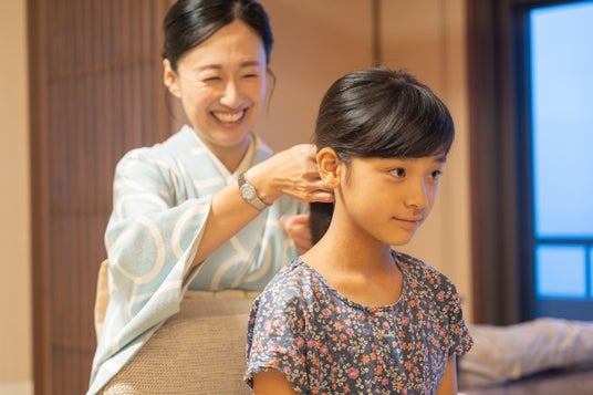 若女将・若旦那の衣装に着替えて、女将とご挨拶の仕方や料理の出し方を学び、ご家族やお客様をもてなす体験をご宿泊のお子様にご提供します。2025年1月から本格スタート!3歳~12歳が対象。