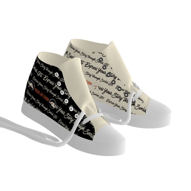 ソーシャルアート市場の、障害者アーティストが制作した企業ロゴや文字等の作品を、当団体の理念に賛同してくれているグラフィックデザイナーである吉光美月氏が、クライアント(企業や個人)のオーダーをデザインに反映していく、世界で唯一無二のアイテムが得られるサービスです。シンボリックアイテムとして、当団体のイメージをほどこしたスニーカーをサンプルとして掲載しています。