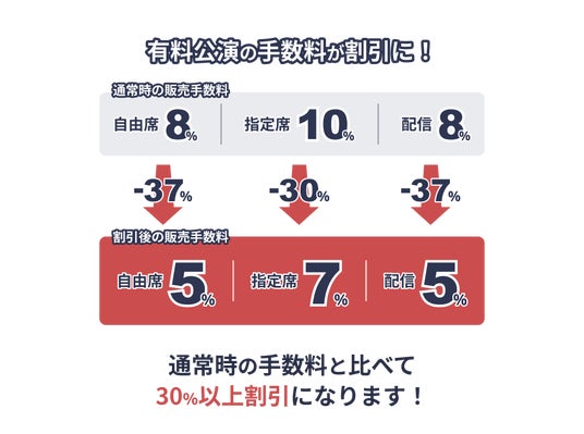 キャンペーン期間中、新規のイベント主催者様の方に限り、通常、teketで有料イベントを行う場合にかかる販売手数料が、30%以上割引になります!