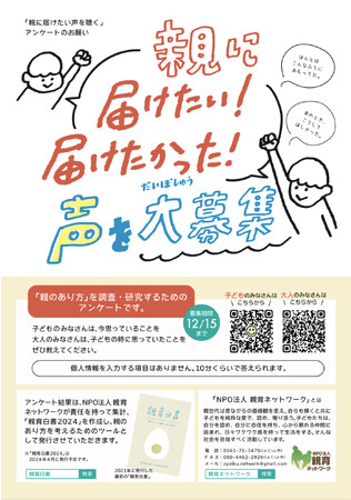 ~「親育白書2024」掲載する「親に届けたい声を聴く」アンケート調査を回答数1000件目標に12月15日(金)まで実施中。「回答する側にメリットのあるアンケートは初めてです」という嬉しい言葉も~