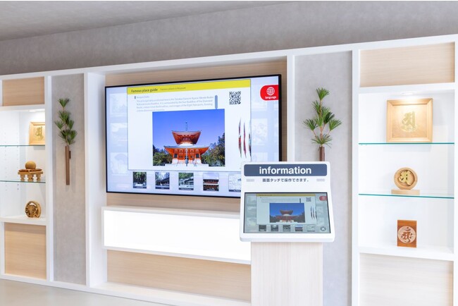 86インチ4Kデジタルサイネージに、高野山の文化遺産や伝統文化、自然などのビジュアルを一括表示。複数のビジュアルの中から気になる情報に直感的にアクセスすることで、詳細情報や地図情報などを入手できます。これまで知らなかった高野山の魅力に出会うことができます。