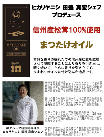 ヒカリヤニシ田邊真宏シェフがプロデュースした「まつたけオイル」