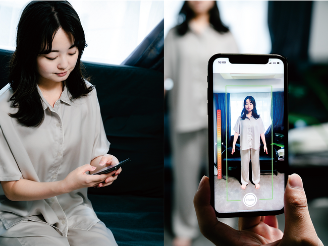 「写真を撮るだけで、本当に正確な数値が取れるのか」と心配な方もいらっしゃると思いますが、「tAIlor pillow」は3DLOOKという世界有数の特許取得済み技術を応用したAI全身測定システムと、最先端の論文をベースにした自社の姿勢推定技術を併用し、全身80箇所を1mm単位で計測します。