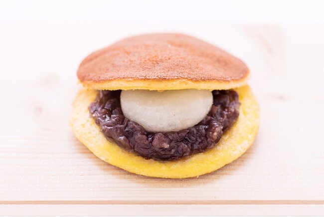 大きなお餅の入ったどら焼きです。まるでケーキのような生地と粒あん、抹茶とお餅が絶妙なバランスで組み合わさった人気商品です。もっちり、歯ごたえのある普通のどら焼きとは一味違う食感をご堪能ください。