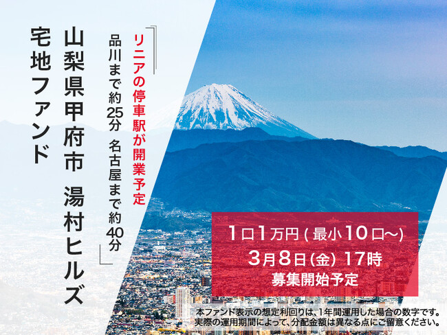 不動産クラウドファンディング「ヤマワケエステート」では、温泉街や甲州種ワインで知られる山梨県甲府市湯村にて新たな不動産ファンド「山梨県甲府市 湯村ヒルズ 宅地ファンド」を公開しました。