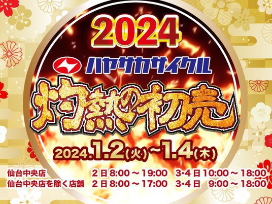 ハヤサカサイクル グループ全店、新年2024年1月2日8:00より「灼熱の初売り」を開催!!
