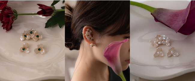 ホリデーシーズン限定カラーでご用意したイヤカフ「flower girl」とピアス/イヤリング「sublime」をお得に購入いただけるセットをご用意しました。