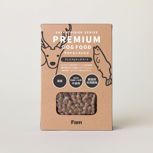 「Fam サカナ&シカジビエ プレミアムドッグフード」は2024年7月25日より公式オンラインストアで販売開始。