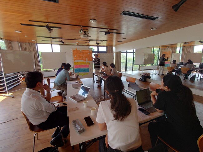 ワークスペースや宿泊施設等に移動し、チームビルディングや地域交流、ワークショップなどを行います。