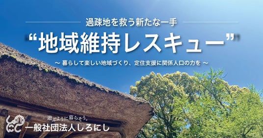 一般社団法人しろにし(本社:和歌山県有田川町、代表理事:楠部睦美)では、今夏以降、過疎に苦しむ地域を救う新たな取り組み“地域維持レスキュー”(商標登録出願中)をスタートします。