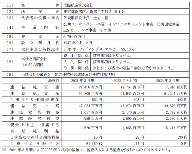 当社は、2023年11月10日開催の取締役会において、下記のとおり、国際航業株式会社(以下「国際航業」といいます。)の全株式を取得し子会社化することについて、決議いたしましたので、お知らせいたします。