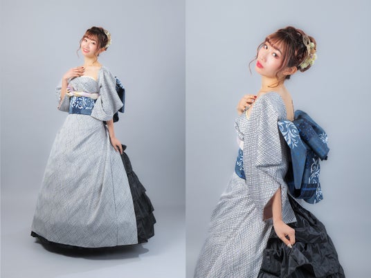 着物をドレスのようにアレンジし、ドレスの着こなしを楽しんでいただけます。