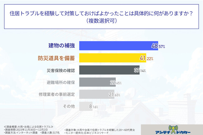 また、今回の調査により、自然災害による住居トラブルには事前対策が非常に重要であることも分かりました。
