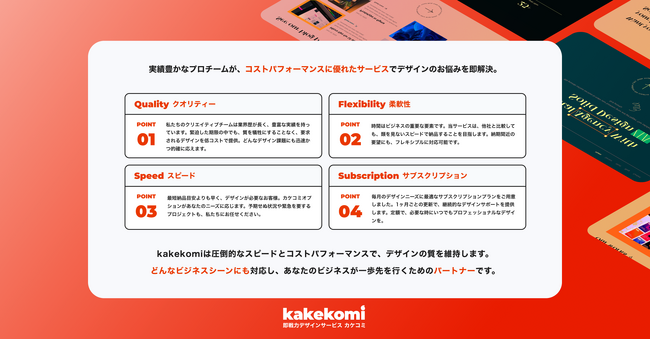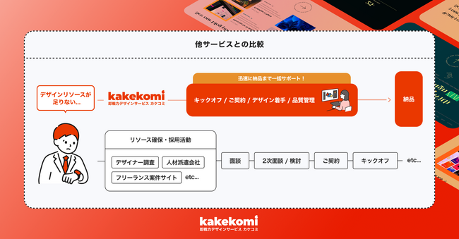 kakekomi(カケコミ)は圧倒的なスピードとコストパフォーマンスで、デザインの質を維持します。