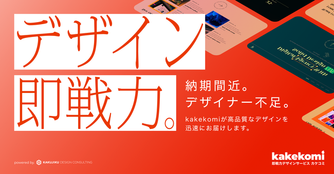KAKUJIKU DESIGN CONSULTING株式会社(本社:東京都渋谷区、代表取締役:神宮司 和希 以下 KAKUJIKU)は、即戦力デザインサービス「kakekomi(カケコミ)」の提供を開始します。このサービスは、迅速なデザイン支援が必要な企業や個人に特化したデザインサービスです。緊急のプロジェクトから、締め切り直前のタスクまで、kakekomi(カケコミ)が高品質でコストパフォーマンスに優れたデザインソリューションをお届けするものです。