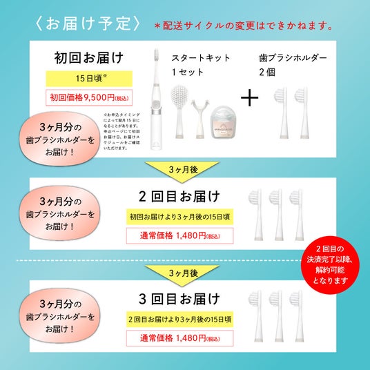 サブスク価格(歯ブラシ3本。3ヶ月単位):1,480円(税込)