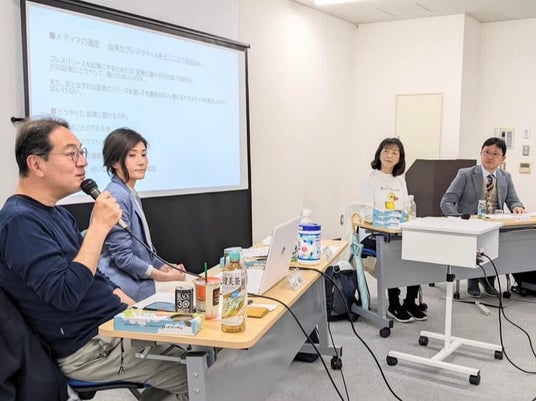 「広報のがっこう」は半年間のスクールで、オンラインとリアルのハイブリッド開催。今年5月~10月まで開催された第一期では、東京・神奈川・大阪・奈良・愛媛・鳥取といった全国さまざまな地域から、中小企業の経営者や行政機関の広報担当者、個人事業主など12名が参加。落語作家の今井ようじ氏、広報PRプロデューサーの加納和子氏、元新聞記者で広報PRコンサルタントの堀美和子氏といった個性あふれるその道の専門の講師陣から、笑いの発想法を身に付けるワークショップや、落語をベースにしたストーリーづくり、人の関心を惹きつけるキャッチコピーづくり、自分のことや自社のことをわかりやすく面白く伝えるコツ、人の心を動かすプレスリリース制作のコツなどを学びました。その成果として、複数の受講生の取り組みが、読売新聞・朝日新聞・日本海新聞などの新聞媒体や、NHK・地元テレビ局などのTV番組などで紹介されました。