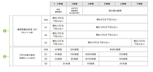 また、WHO(世界保健機関) が2018年11月に公表した「住まいと健康のガイドライン」でも、室内は18°C以上であることを強く推奨しています。HEAT20のG2水準を満たす住宅であれば、最低体感温度はおおむね15℃程度(1・2地域の場合)、軽く暖房を入れるだけでWHO基準の18℃に保てるので、温度ストレスが小さく暮らしやすさが向上します。