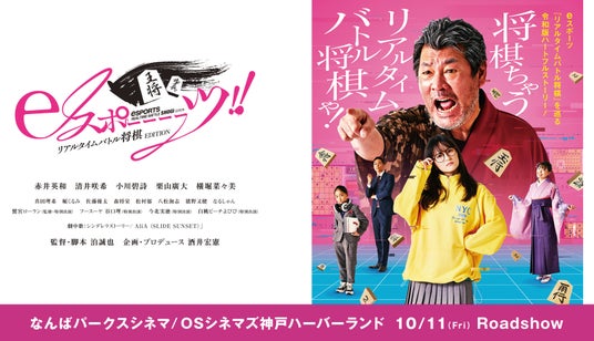 映画「eスポーーーーツ!!リアルタイムバトル将棋EDITION」はロケーション協力いただいた大阪市浪速区にあるなんばパークスシネマと、、若者のエンタメ文化に造詣が深く、最新トレンドの発信を続ける“みなとまち”神戸・OSシネマズ神戸ハーバーランドで劇場公開が決定しました。