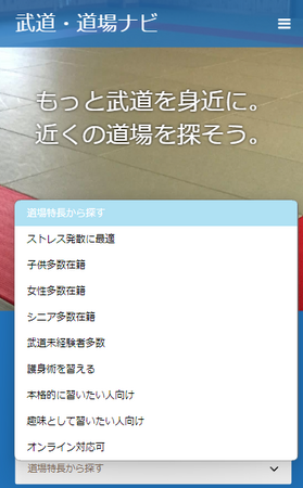 このような状況を変える一助になればと思い、武道・道場ナビを立ち上げました。