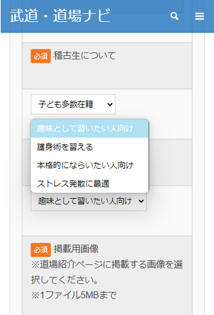 武道・道場ナビでは道場の特長を掲載していただくことができます。