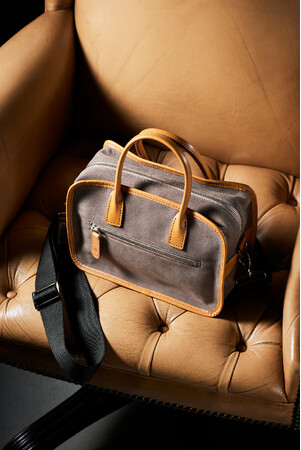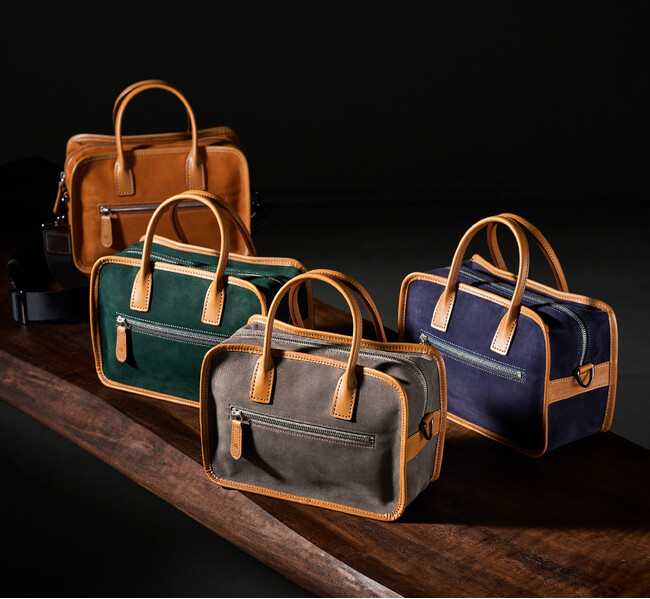 大人の休日に最適なミニバッグ、男らしさと気軽さを持ち合わせた洗練されたミニショルダーボストンです。スペイン原皮のヌバックレザーと、イギリス産オークバークレザーを使用し、日本の熟練職人が仕立てた本格派のミニバッグです。