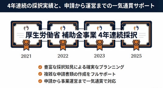 PFS事業への補助金公募が実施されなかった2024年度を除き、4年連続で採択されている。