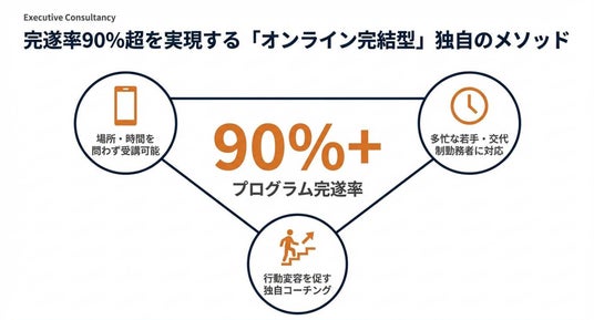 時間や曜日を問わないオンライン完結型:場所や曜日、時間帯を問わずスマートフォンやPCで受講可能です。交代制勤務の方や多忙な若手社員でも継続しやすい環境を提供し、高い継続率を実現します。