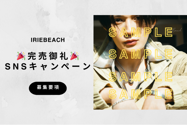 2023年12月、アイリービーチ初となるWEBCM『刻む』を公開後、多くのお客様にご視聴ならびにコメントなど多くの反響を頂き、誠にありがとうございます。一方で即日完売アイテムや再入荷でお待たせしてしまったお客様に向けて、ささやかながら感謝の意を込めて「完売御礼SNSキャンペーン」を期間限定で開催いたします。