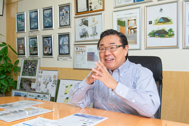 設立は1992年10月。木造建築物の構造設計、コンサルティング、さらに業界では珍しい自社で製品開発を主とする企業。阪神淡路大震災をきっかけに開発された「Jー耐震開ロフレーム」をはじめ、取得している特許技術は100を超える。開発した製品の中には「シェルターユニットバス」がNHK「サキドリ↑」で紹介実績あり。