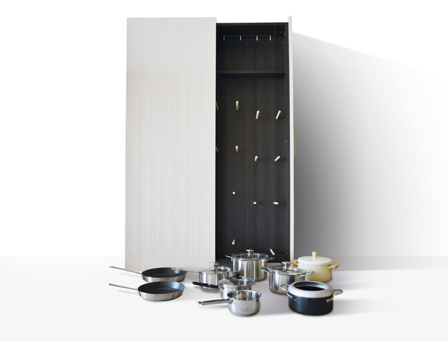 10年の月日をかけて開発を進めてきた製品がようやく商品化。開けた瞬間に必要な鍋をさっと取り出せるディスプレイ型の鍋収納ラック [Pots]