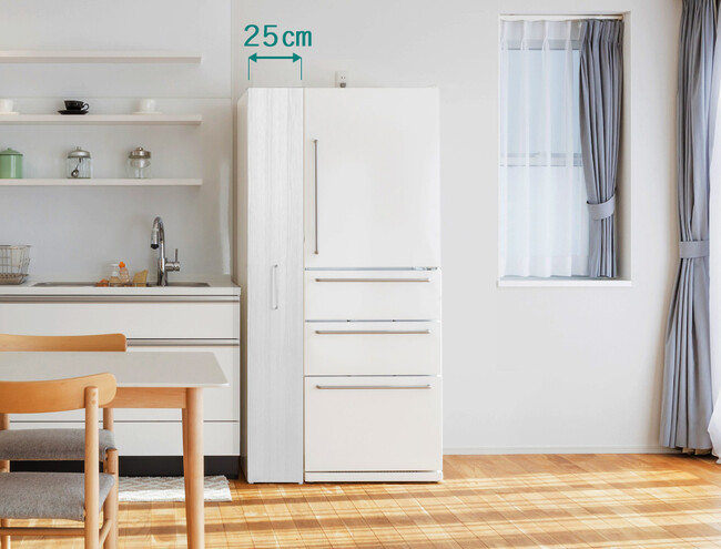 シンクや冷蔵庫横のわずか幅25cmのスキマに設置できます。キッチンのスキマ空間を鍋・フライパン収納に有効利用できます。