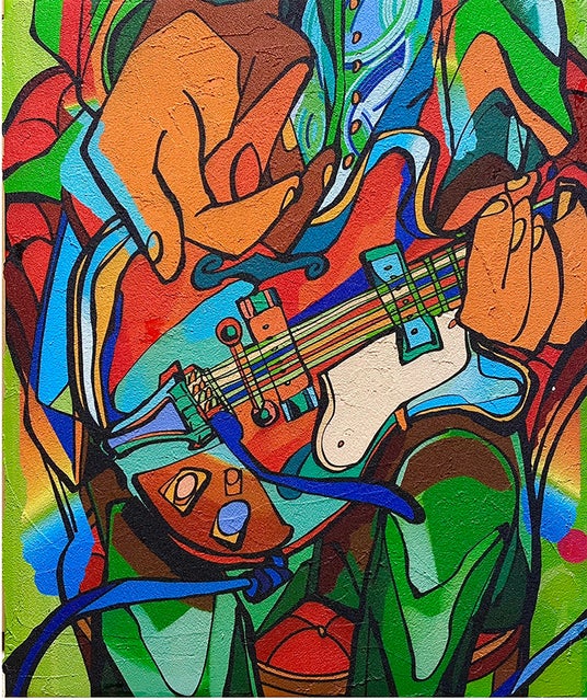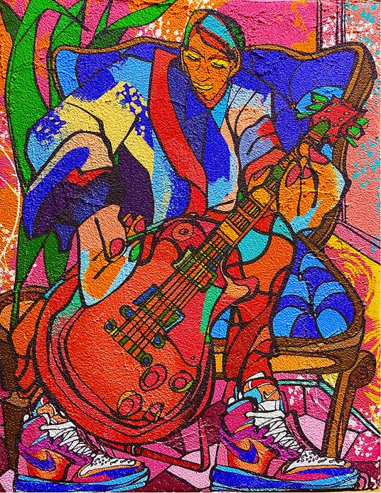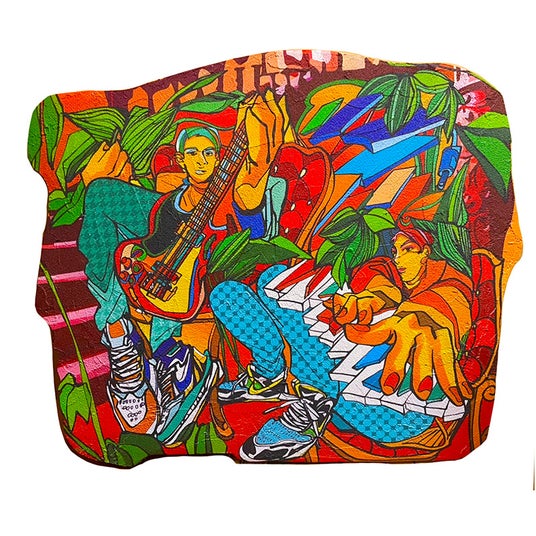 現代アーティスト ナカミツキは10代前半の半身麻痺での入院生活をきっかけに”音楽” をモチーフとし、身体性と対話をテーマに既存のルールにとらわれない多様な価値観を持ち、デジタルネイティブとして育った日常的ツール「iPhone」で制作を行っています。制作工程は、アートをデータ化することでどこにでも出現することができますが、一度作品化された画像は、「iPhone」のデータから即座に削除されるといった、この現代的なスピード感はこれまでにない新しいアートの形を生み出しています。ナカは自身の感情を一瞬に集中し直感的に描き切りますが、物質的に作品化する事で価値観を鑑賞者と共有しながら対話を形成しています。音楽から表現された瞬間的な彩度と空気感、滑らかかつ力強い線が観るものに衝動を与えます。