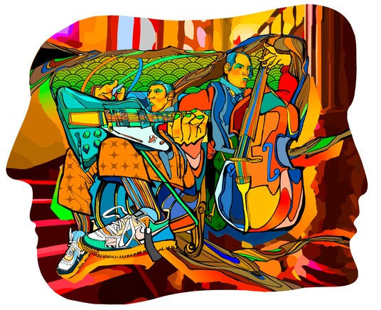 ナカの作品は、旧来と新しい技術の調和を取りながら、デジタルアプリケーションの他に、伝統的な柄を用いたシルクスクリーン技術が使用され、広がりと大胆な線が従来のパースペクティブと異なる独自の空間性を生み出します。「LIFE」の本質は、ナカが頻繁に取り上げる音楽の非言語的コミュニケーションに焦点を当て、端末機器の使用がもたらした生活や思考について、音楽の持つ言語を超えた歴史や人々の交流、現代の生き方を見つめ直し、対話を促します。