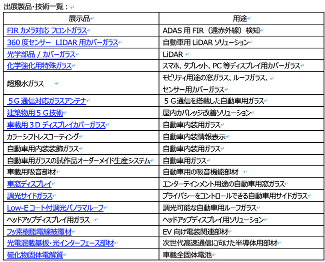 CES2024でAGCが展示した主な素材・ソリューションは以下の通りです。
