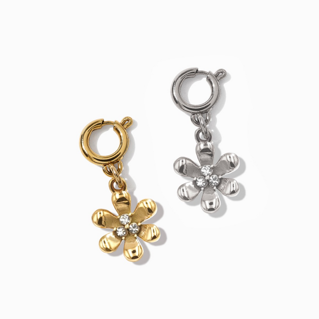 お花の中心には、ストーンで埋め尽くされたハートモチーフをセッティング。シンプルでありながら、可愛さと上品さを兼ね備えたデザインです。