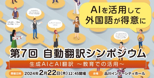 今回、「生成AIとAI翻訳 ~教育での活用~」をテーマに、7回目となる「自動翻訳シンポジウム」を品川インターシティホールにて開催いたします。シンポジウムでは、研究者による最新の技術動向や、教育者による教育現場での自動翻訳技術の活用に関する講演を行います。また、23者の企業・団体による最新の自動翻訳製品・サービス等の展示も行います。実際の製品・サービスの体験もでき、自動翻訳の「今」の最新技術を体感いただけます。