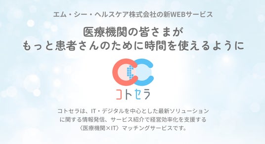 エム・シー・ヘルスケア株式会社(東京都港区 代表取締役社長 三池正泰)が運営する医療機関向けサービス比較サイト「コトセラ」は2024年3月21日(木)に「スマホがもたらす病院改革」をテーマにオンライン展示会「コトセラEXPO 病院スマホ総合展」を開催いたします。